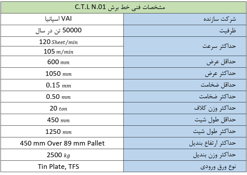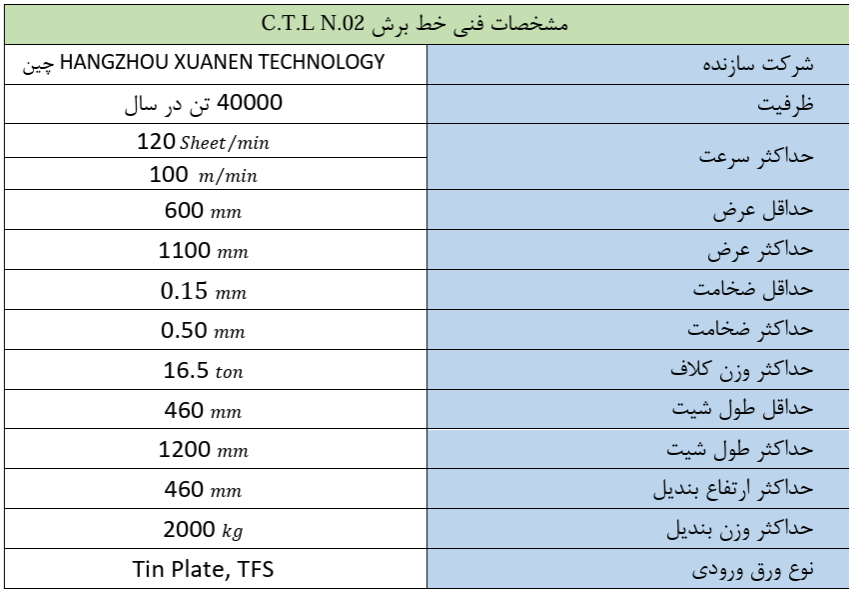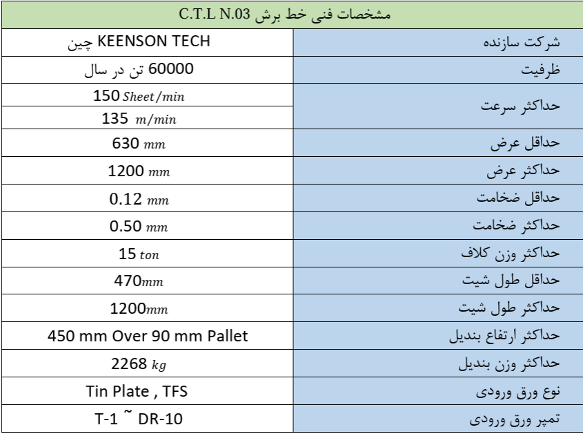 این شرکت دارای سه خط برش به ظرفیت اسمی ۱۵۰ هزار تن در سال میباشد. پس از تولید کلاف قلع اندود در صورت درخواست مشتری نیاز است تا کلاف به صورت ورق خورده و به منظور جلوگیری از آسیب دیدگی با دقت بسته بندی گردند.