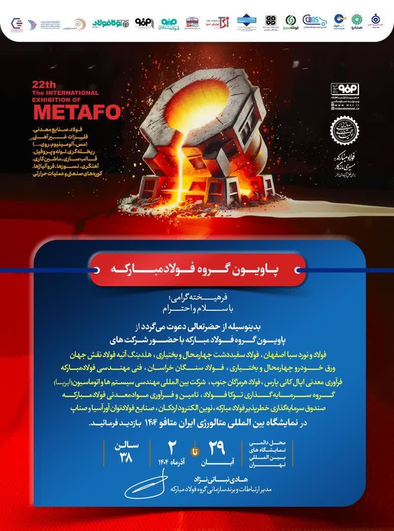 شرکت صنایع فولاد توانآور آسیا با افتخار شما را به بازدید از غرفهی خود در نمایشگاه بینالمللی ایرانمتافو ۱۴۰۴ دعوت مینماید.